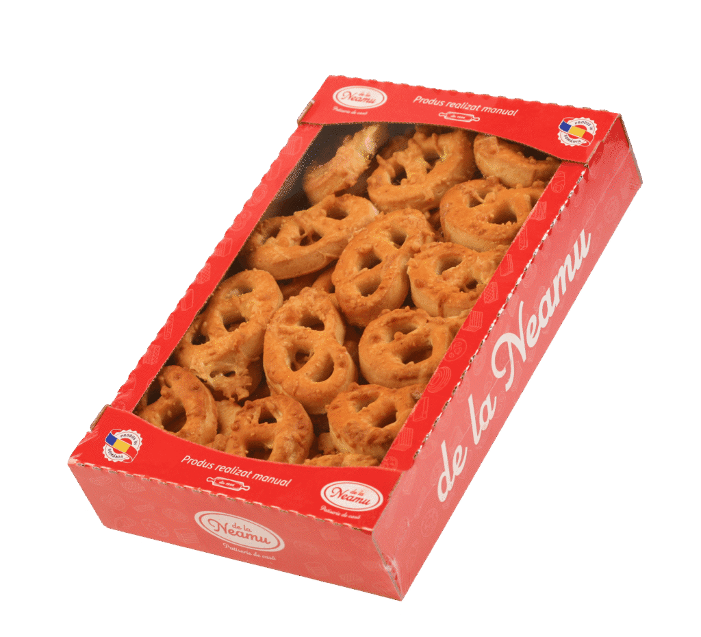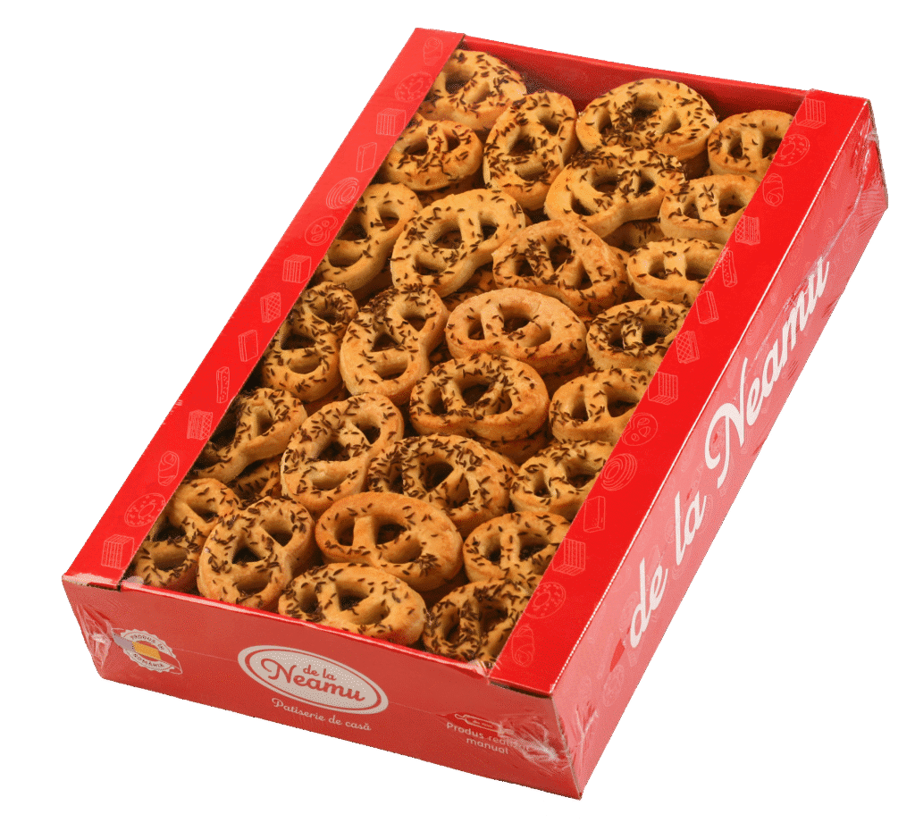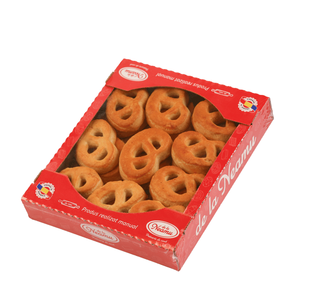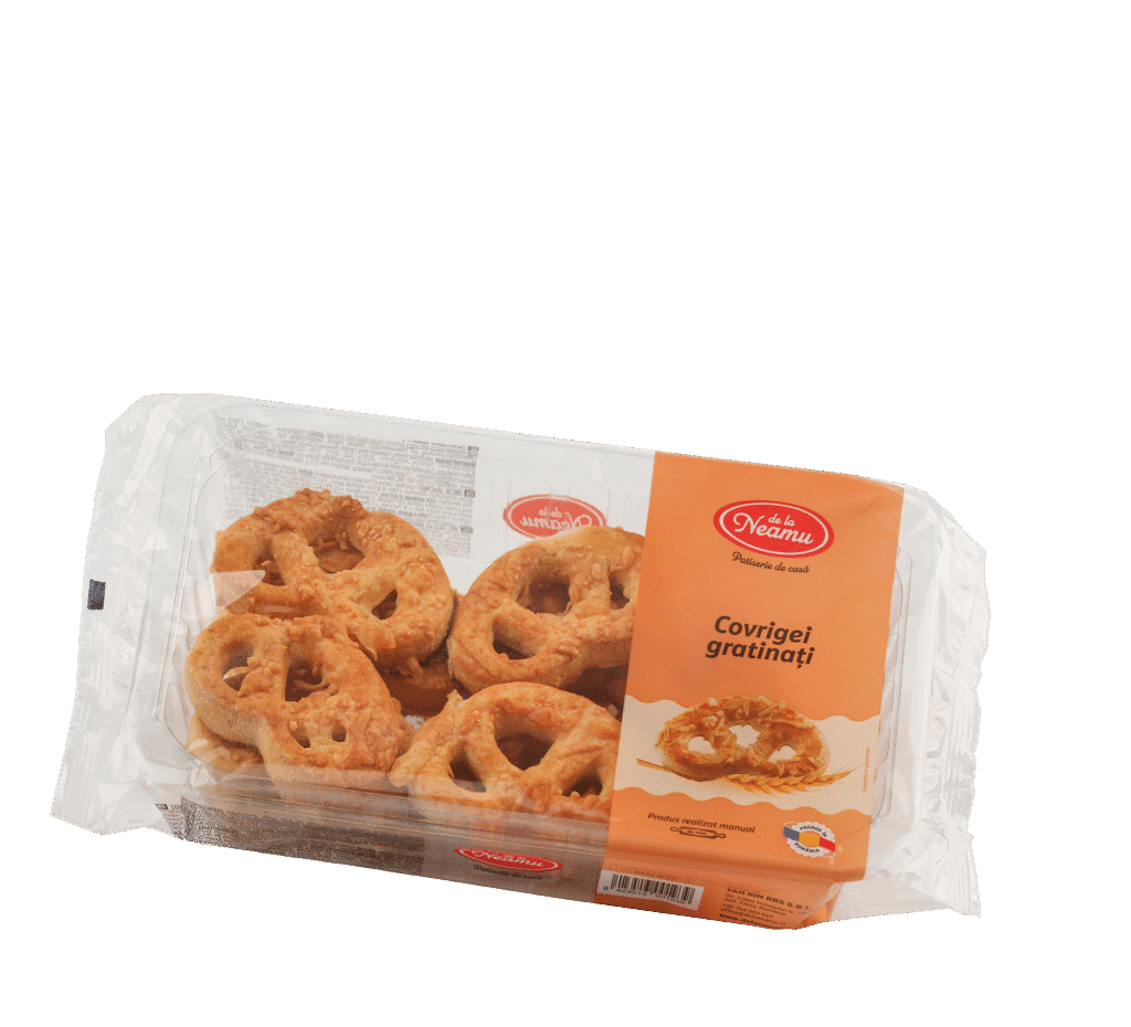 Covrigeii De la Neamu sunt produse de patiserie manuală, fragede și gustoase, făcute după rețete simple și curate, ca odinioară. Glazurați cu ou pentru un luciu apetisant, covrigeii noștri sunt disponibili în mai multe sortimente, pentru toate gusturile: simpli, cu cașcaval, cu chimen sau cu susan.